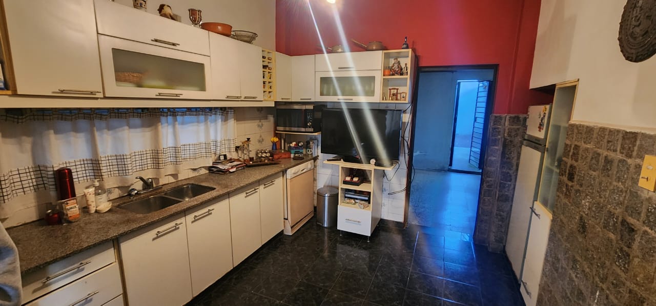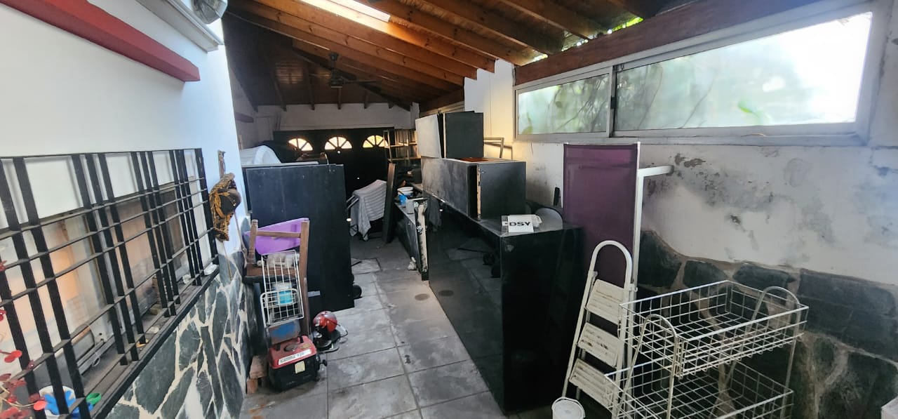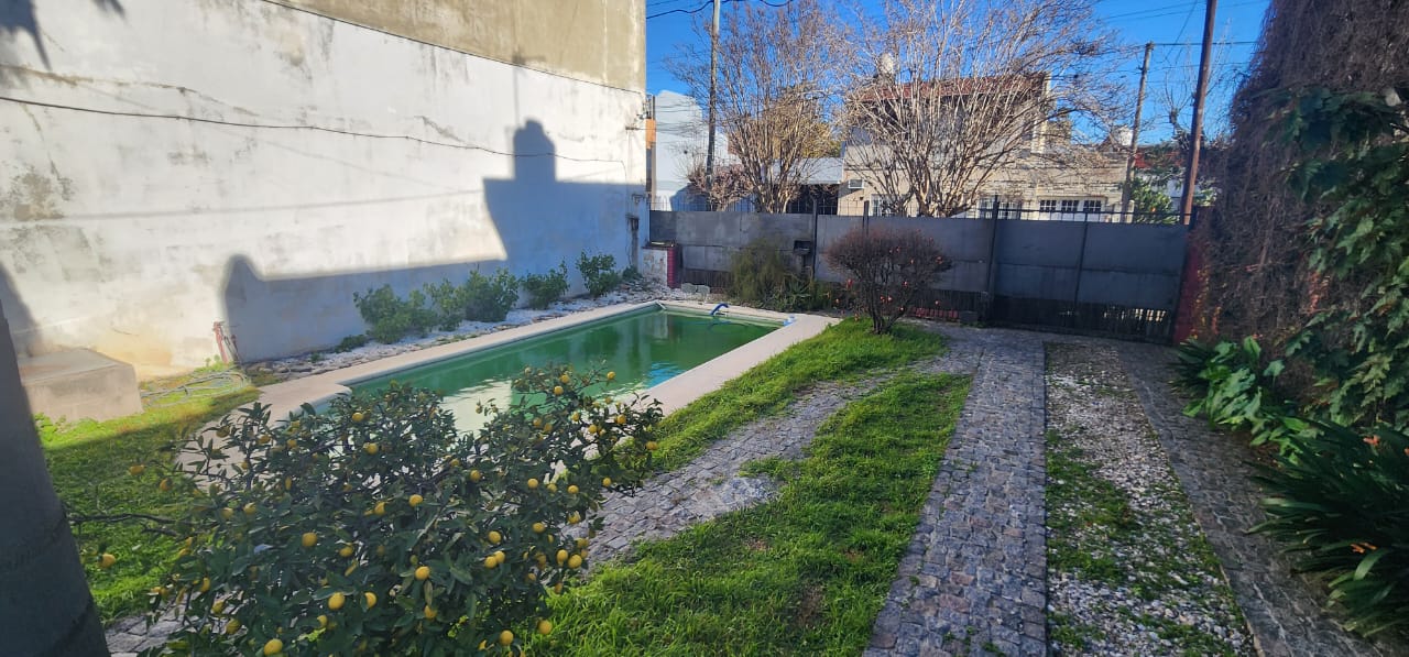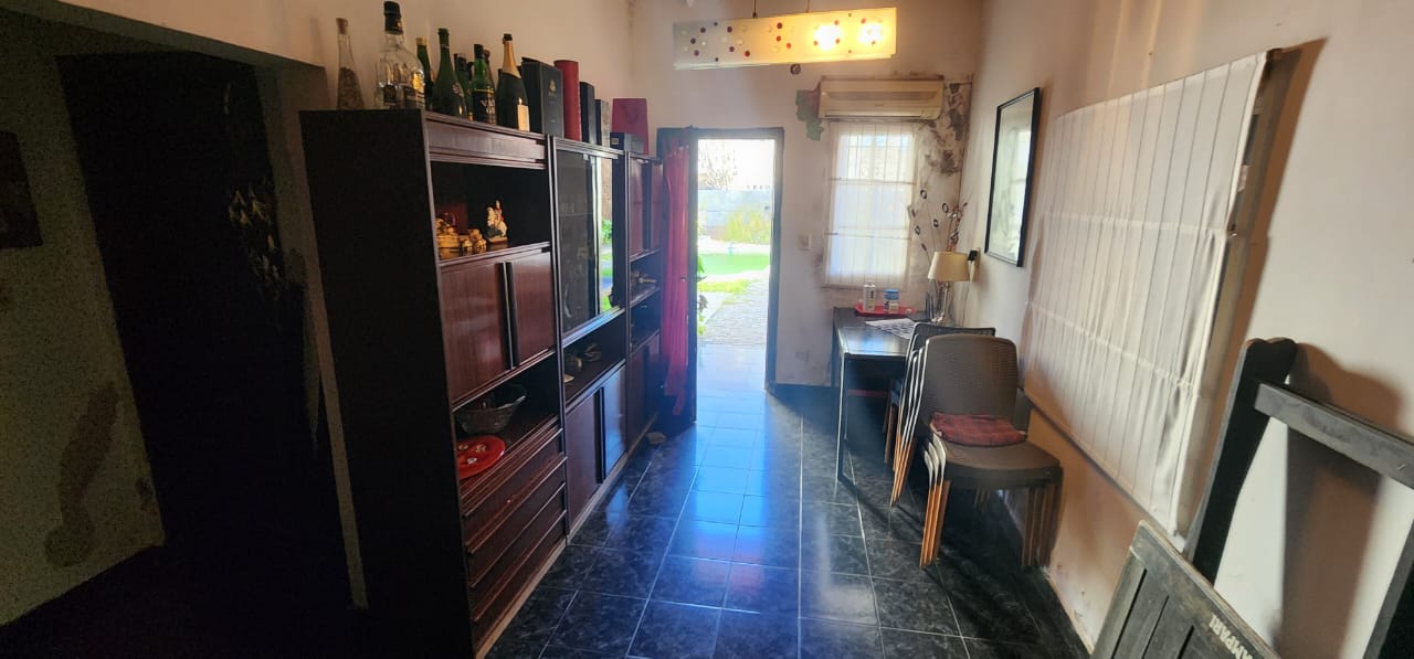 Casa al frente con garage descubierto y cubierto (Galería), Living Comedor. Cocina y 2 dormitorios. Parque con pileta y Quincho.