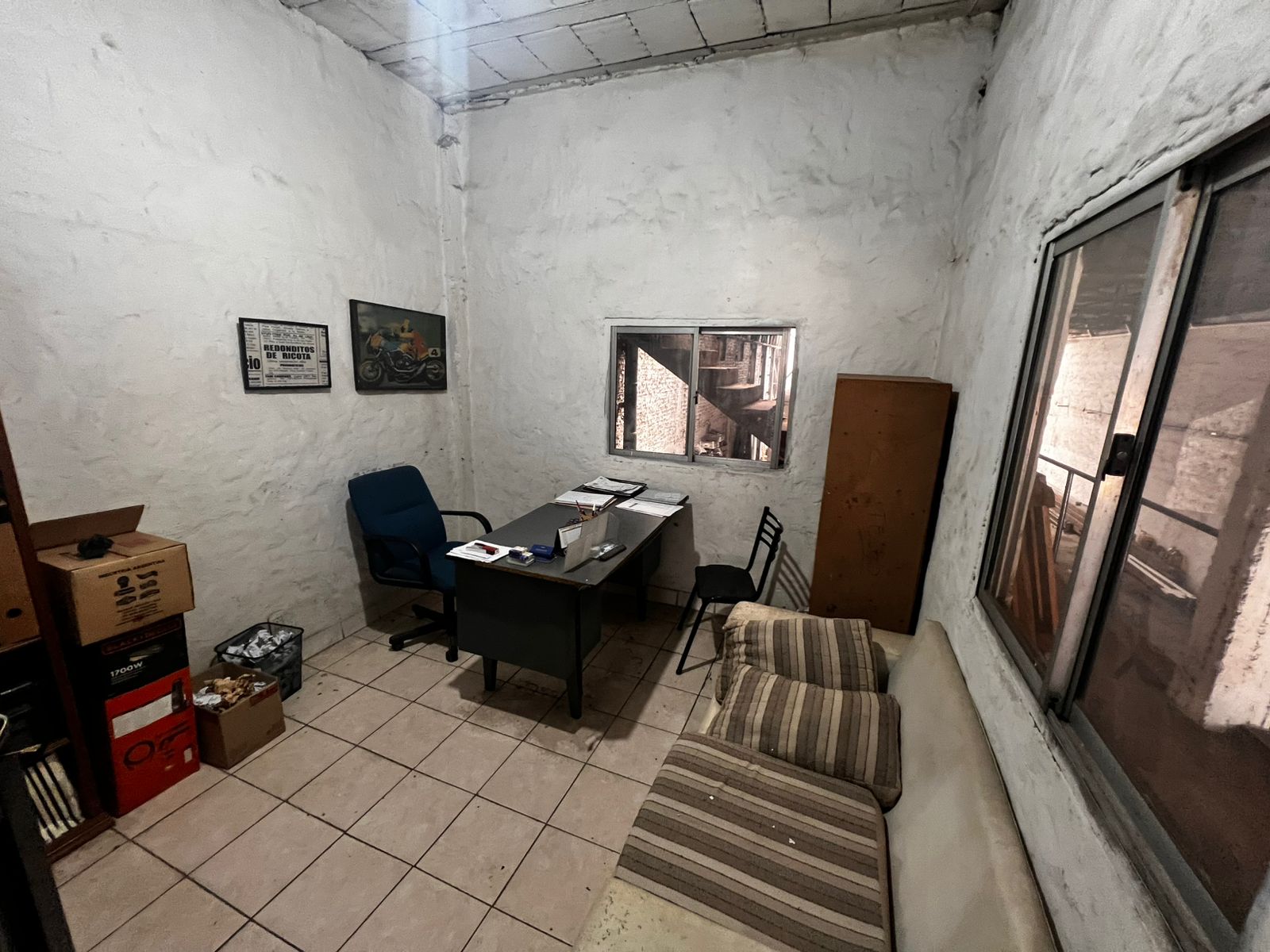 Galpon construido sobre un lote de terreno de 350 m² (10 de frente x 35 m de fondo) con techo de Losa. Posee una cochera en planta baja con baño, Entre piso con una oficina y en planta alta un pequeño deposito. Al galpón se ingreso por cortina automatizada para vehículos y se conecta con la cochera. Posee otro baño y un kitchenette.