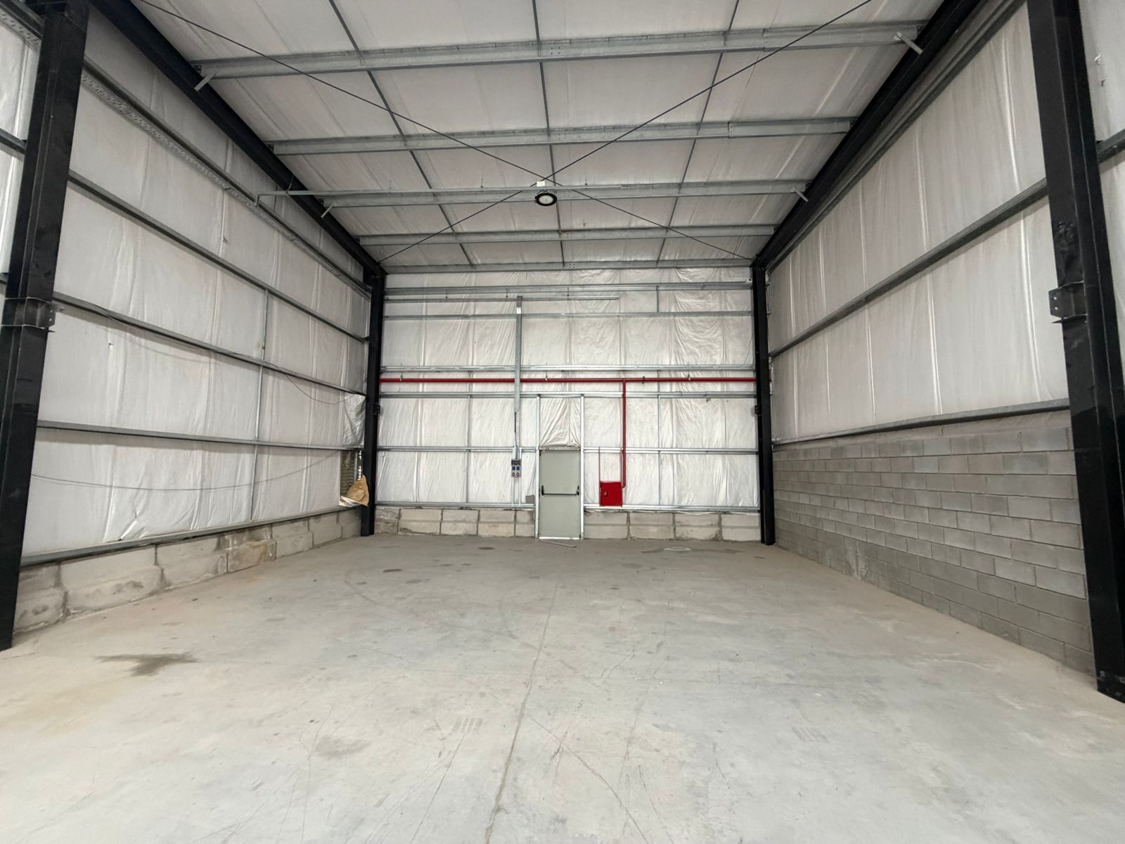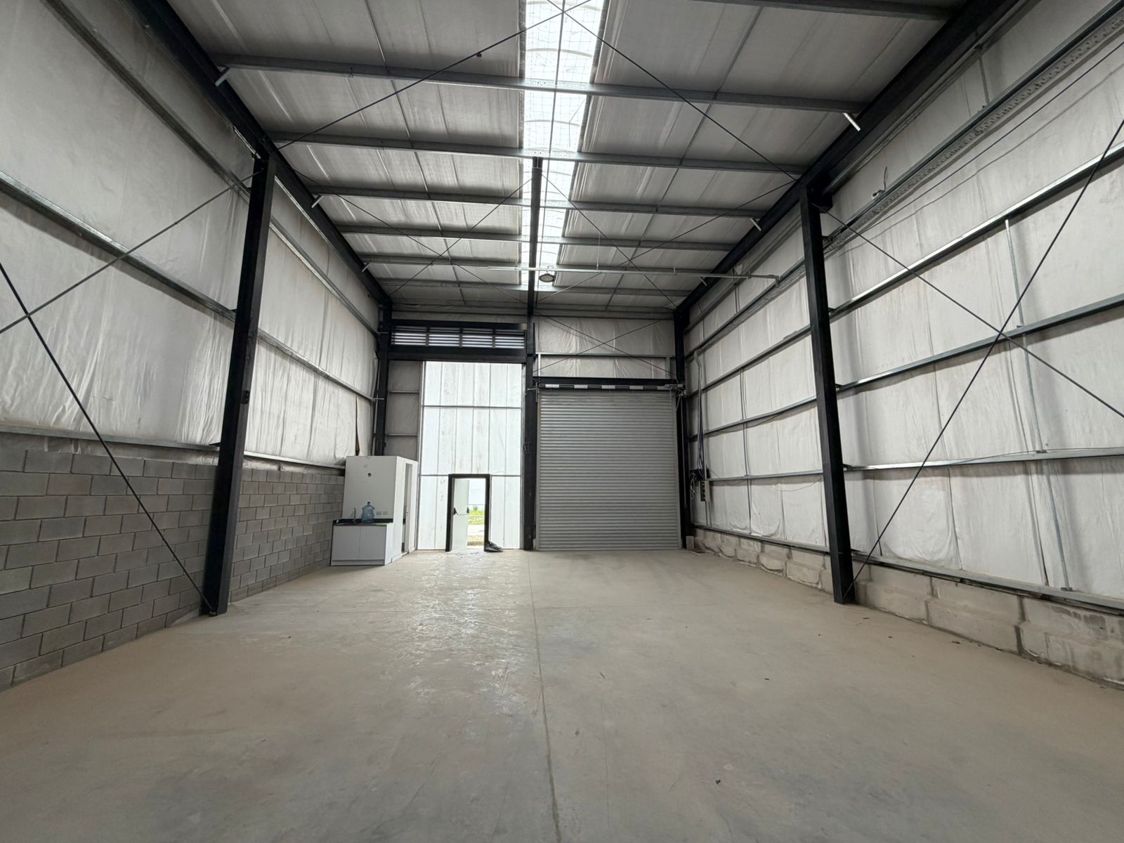 Galpon de 235 m2 con baño. Posee entrada por cortinas automatizadas y peatonal. Piso de hormigón de alto tránsito, techo de chapa con aislamiento. Altura del techo: 8 metros a la cabreada. Estacionamiento de cortesía al frente.