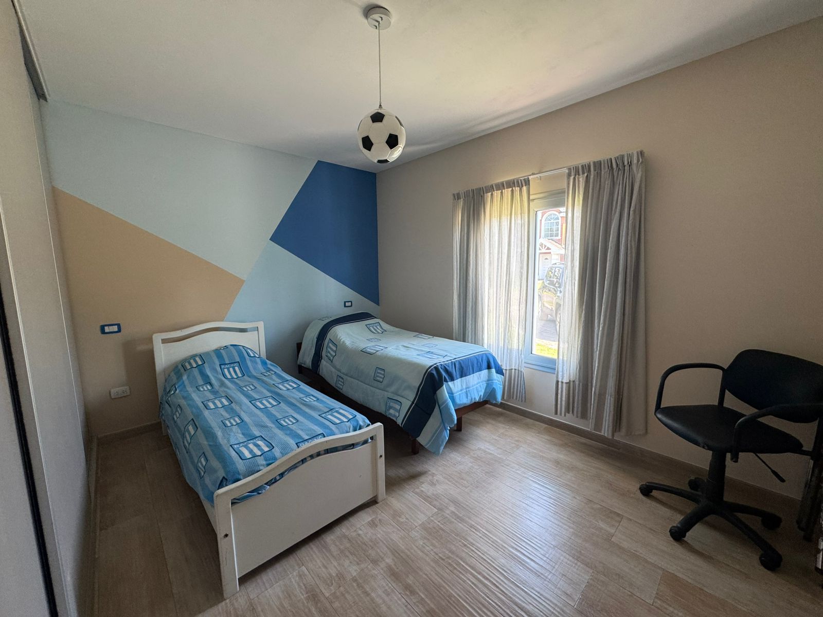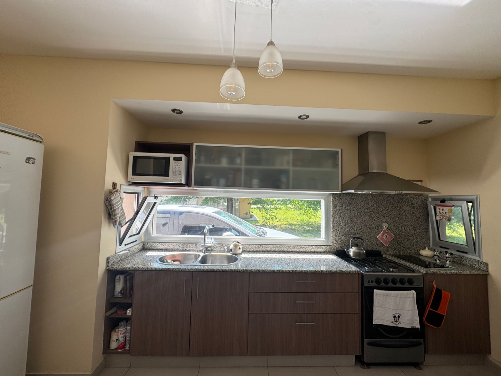 Casa de 4 ambientes en el Barrio Privado las Perdices. La propiedad posee living comedor, cocina americana equipada con anafe y horno eléctrico, campana extractora y muebles de alacena y bajo mesada, barra desayunadora. Living comedor con hogar, 3 habitaciones (1 con baño en suite y vestidor) y 2 dormitorios con placar. 2 Baños, cuarto de guardado, galería con parrilla y lavadero. Amplio Jardín con pileta de natación y solárium. Entrada de vehículos para varios coches,