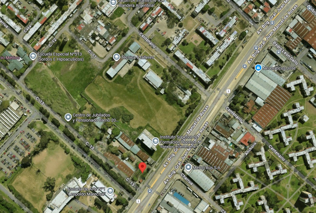 Fracción en esquina de 7060 m² ubicada sobre la Av. Juan Manuel de Rosas con 58 metros de frente sobre la avenida y con 125 m sobre calle lateral. La propiedad presenta varios galpones con techo de chapa que se usan actualmente para deposito, con una superficie a aproximada de 3000 m².