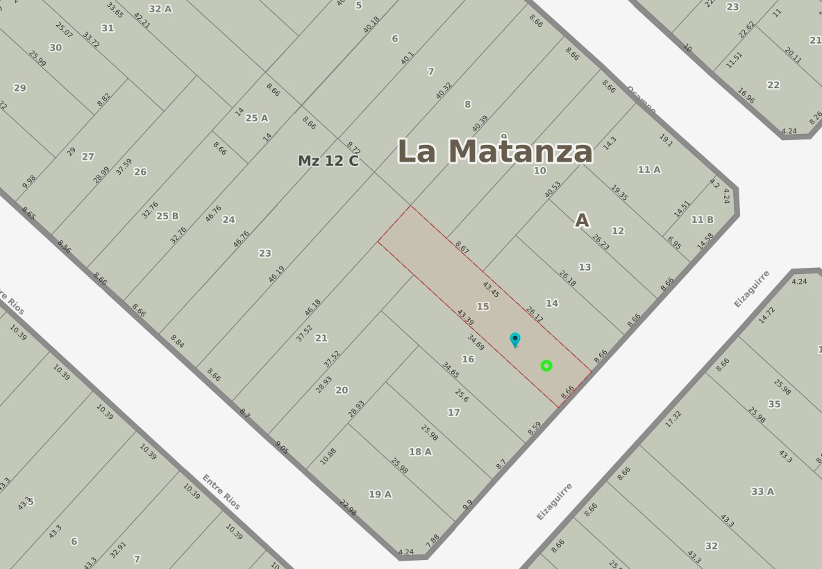 Medidas de Lote: 8,66 m de frente por 43,45 m de fondo